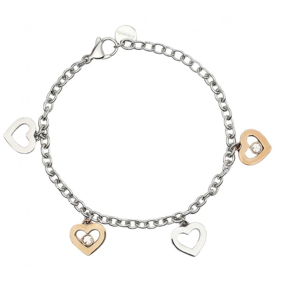 Ženska narukvica 2JEWELS 232494 izrađena od nehrđajućeg čelika 316L iz kolekcije TO BE LOVED s lančićem od 4 mm i privjescima u obliku srca. Elegantna i profinjena narukvica kao idealan poklon za svaku priliku.
