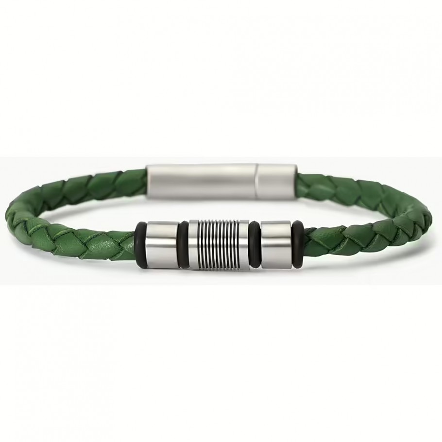 Muška narukvica 2JEWELS 232547 od nehrđajućeg čelika 316L iz kolekcije STREET presvučena srebrnim PVD-om i zelenom kožom. Lagana i mekana narukvica kao idealan poklon za svakog muškarca.