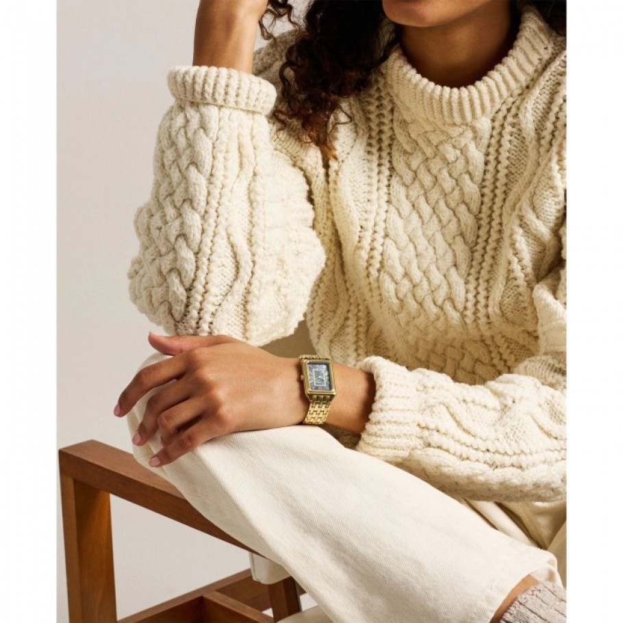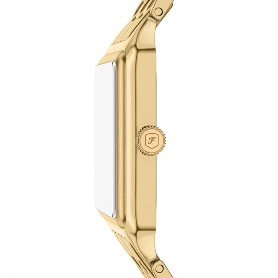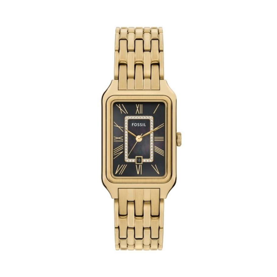 Ženski ručni sat FOSSIL ES5417 iz kolekcije Raquel predstavlja elegantan spoj minimalizma i sofisticiranosti, što ga čini idealnim izborom za žene koje preferiraju minimalistički, ali luksuzan stil prikladan za svakodnevno nošenje, kao i za svečane prilike. Kućište sata zlatne boje izrađeno je od nehrđajućeg čelika, što garantira izdržljivost i dugotrajnost, te crne boje brojčanika. Pokreće ga visokokvalitetan quartz mehanizam osiguravajući preciznost u svakom trenutku dok mu remen od nehrđajućeg čelika zlatne boje pruža istovremeno suptilni i elegantan izgled.