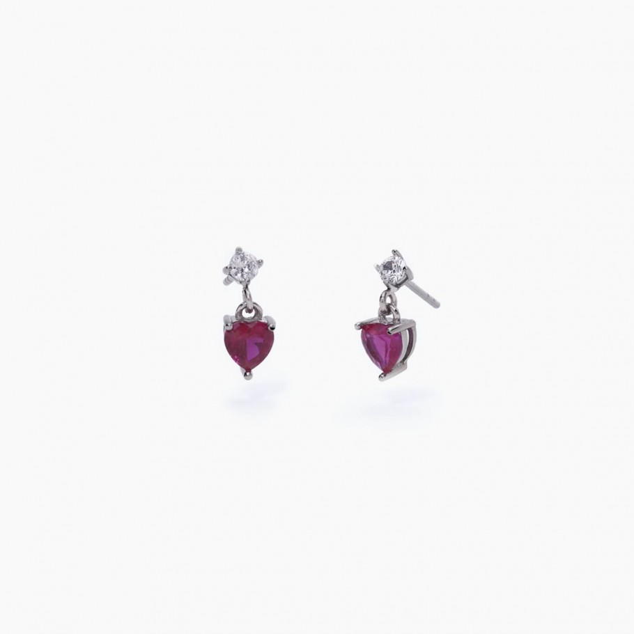 Ženske naušnice 2JEWELS 261350 od nehrđajućeg čelika 316L iz kolekcije SMACK s privjeskom u obliku srca 6x6 mm i sintetičkim rubinom te bijelim kristalima Ø 3,5 mm. Elegantne i profinjene naušnice kao idealan poklon.
