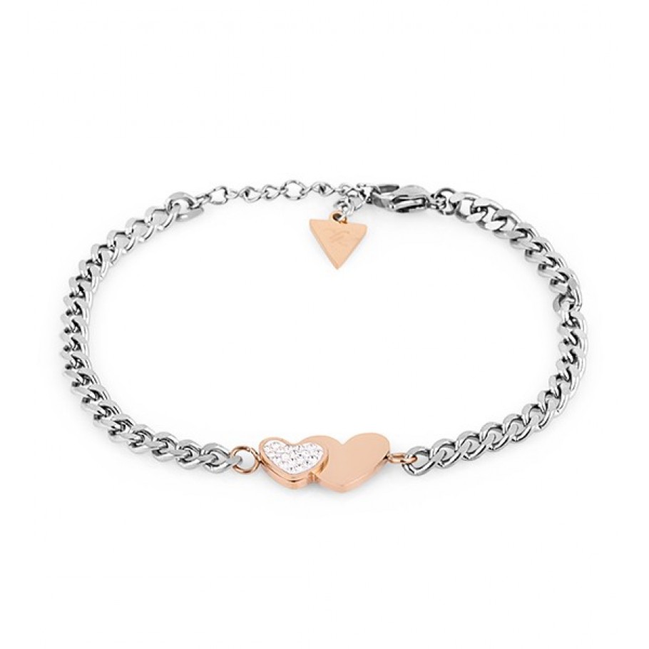 Ženska narukvica DANIEL KLEIN DKJ.3.1008-2 od nehrđajućeg čelika s lančićem srebrne boje i privjeskom srca rozo zlatne boje. Elegantna i profinjena narukvica kao idealan poklon za svaku priliku.