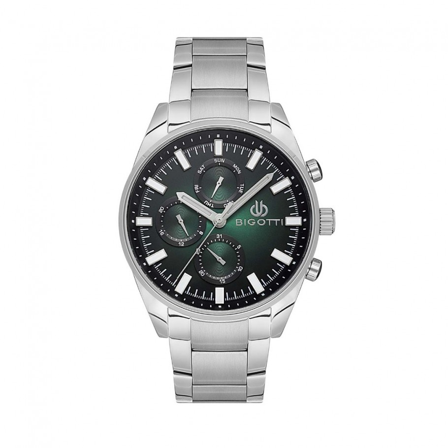 Muški ručni sat BIGOTTI BG.1.10515-4 talijanski modni brend koji Vas čini odvažnim i jedinstvenim. Satom dominira srebrna boja kućišta te crno zelena boja brojčanika. Model je opremljen quartz mehanizmom i mineralnim staklom.