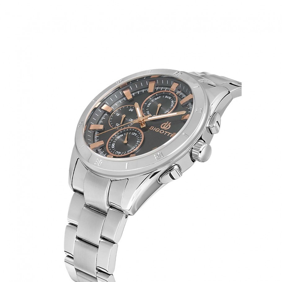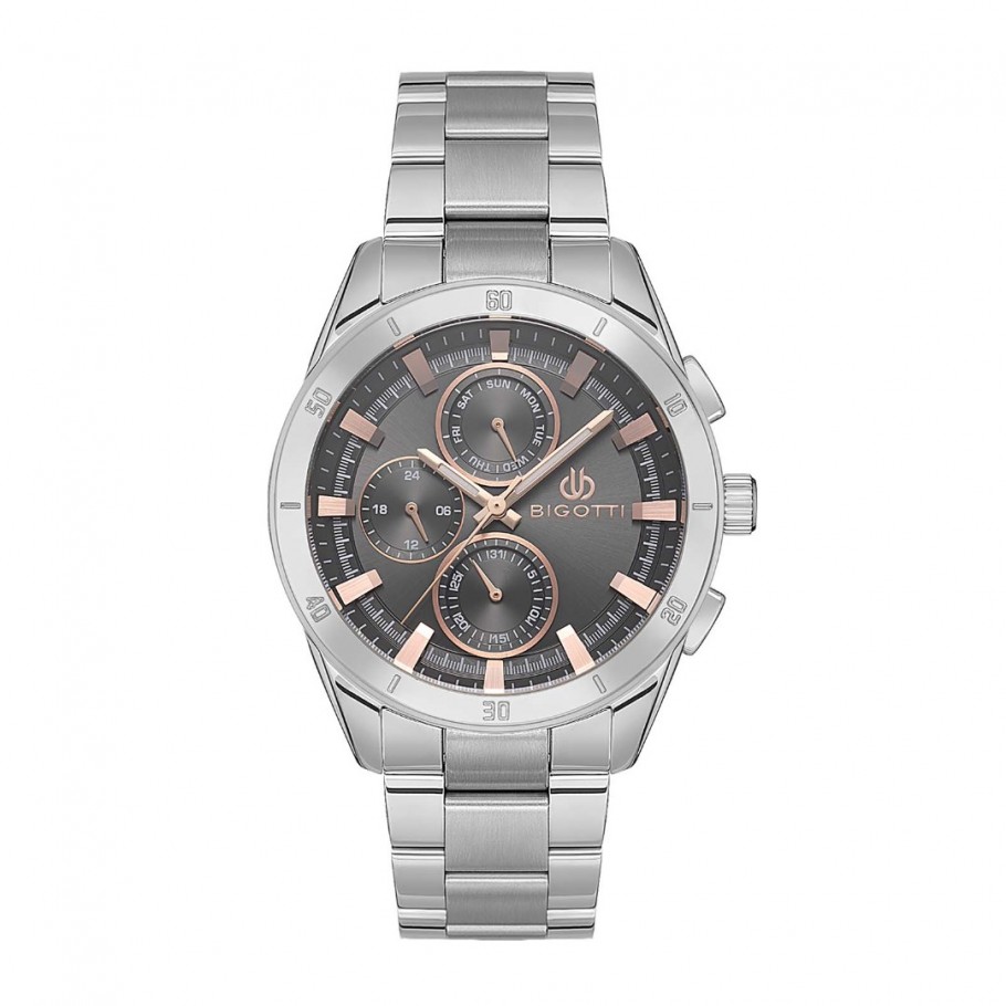 Muški ručni sat BIGOTTI BG.1.10531-4 talijanski modni brend koji Vas čini odvažnim i jedinstvenim. Satom dominira srebrna boja kućišta te siva boja brojčanika. Model je opremljen quartz mehanizmom i mineralnim staklom.