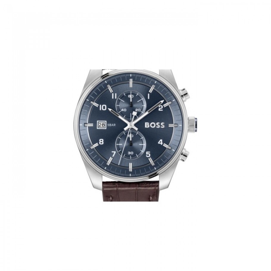 Muški ručni sat BOSS 1514194 simbol stila, funkcionalnosti i pouzdanosti, idealan dodatak za svakodnevno nošenje te pruža pouzdanost u svim uvjetima. Kućište sata srebrne boje izrađeno je od kvalitetnih materijala, te plave boje brojčanika. Precizan quartz mehanizam omogućava točno mjerenje vremena dok mu remen od kože smeđe boje daje moderan i sofisticiran izgled.
