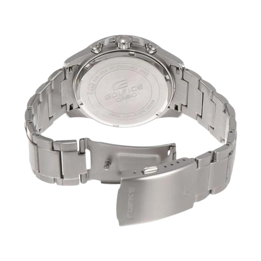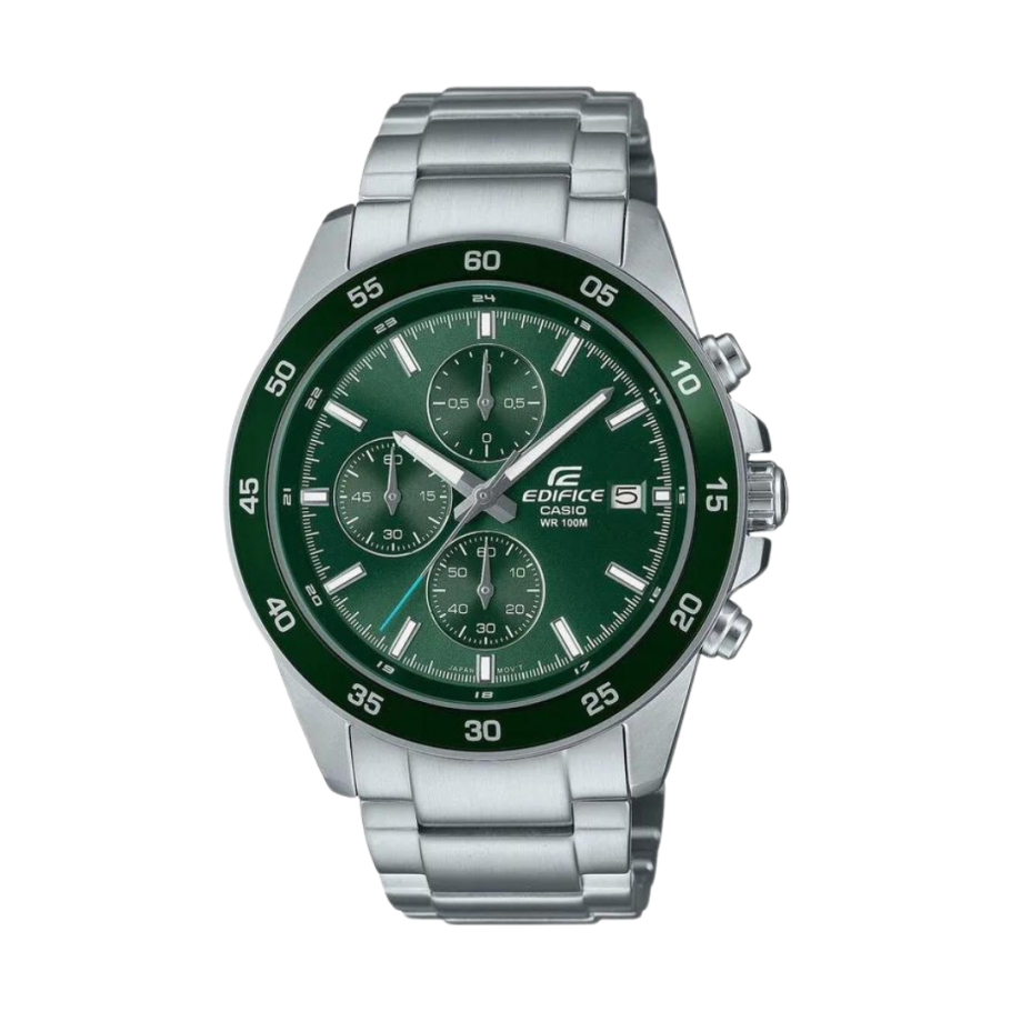Muški ručni sat CASIO EFR-526D-3AVUEF iz kolekcije EDIFICE spoj snage, čvrstoće i pouzdanosti. Sportski dizajn i širok izbor boja omogućava svakome da prepozna svoj dio sebe. Čelik i srebrna boja remena s kopčom daju posebnu notu ovom satu i čine ga ugodnim za nošenje. Satom dominira srebrna boja kućišta te zelena boja brojčanika. Sat pokreće quartz mehanizam.