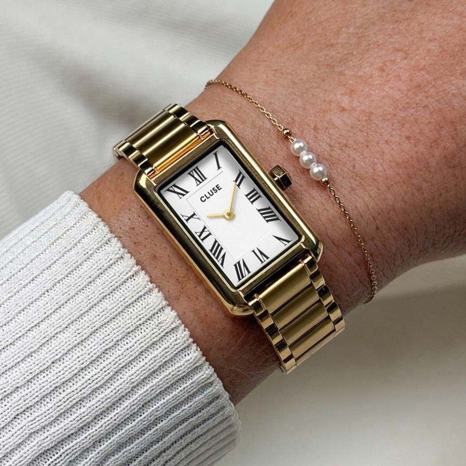 Ženski ručni sat CLUSE CG15001 iz kolekcije Belisenna predstavlja elegantan spoj minimalizma i sofisticiranosti, što ga čini idealnim izborom za žene koje preferiraju minimalistički, ali luksuzan stil prikladan za svakodnevno nošenje, kao i za svečane prilike. Kućište sata zlatne boje izrađeno je od nehrđajućeg čelika, što garantira izdržljivost i dugotrajnost, te bijela boja brojčanika. Pokreće ga visokokvalitetan quartz mehanizam osiguravajući preciznost u svakom trenutku dok mu remen od nehrđajućeg čelika zlatne boje pruža istovremeno suptilni i elegantan izgled.
