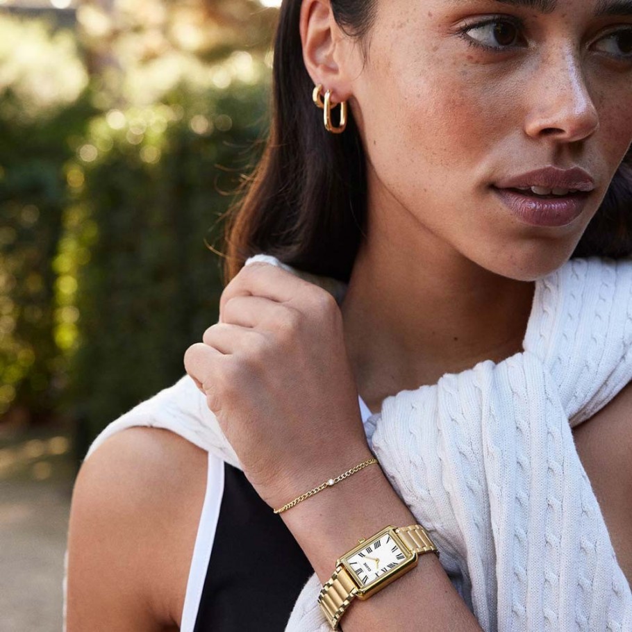 Ženski ručni sat CLUSE CW15001 iz kolekcije Belisenna predstavlja elegantan spoj minimalizma i sofisticiranosti, što ga čini idealnim izborom za žene koje preferiraju minimalistički, ali luksuzan stil prikladan za svakodnevno nošenje, kao i za svečane prilike. Kućište sata zlatne boje izrađeno je od nehrđajućeg čelika, što garantira izdržljivost i dugotrajnost, te bijela boja brojčanika. Pokreće ga visokokvalitetan quartz mehanizam osiguravajući preciznost u svakom trenutku dok mu remen od nehrđajućeg čelika zlatne boje pruža istovremeno suptilni i elegantan izgled.