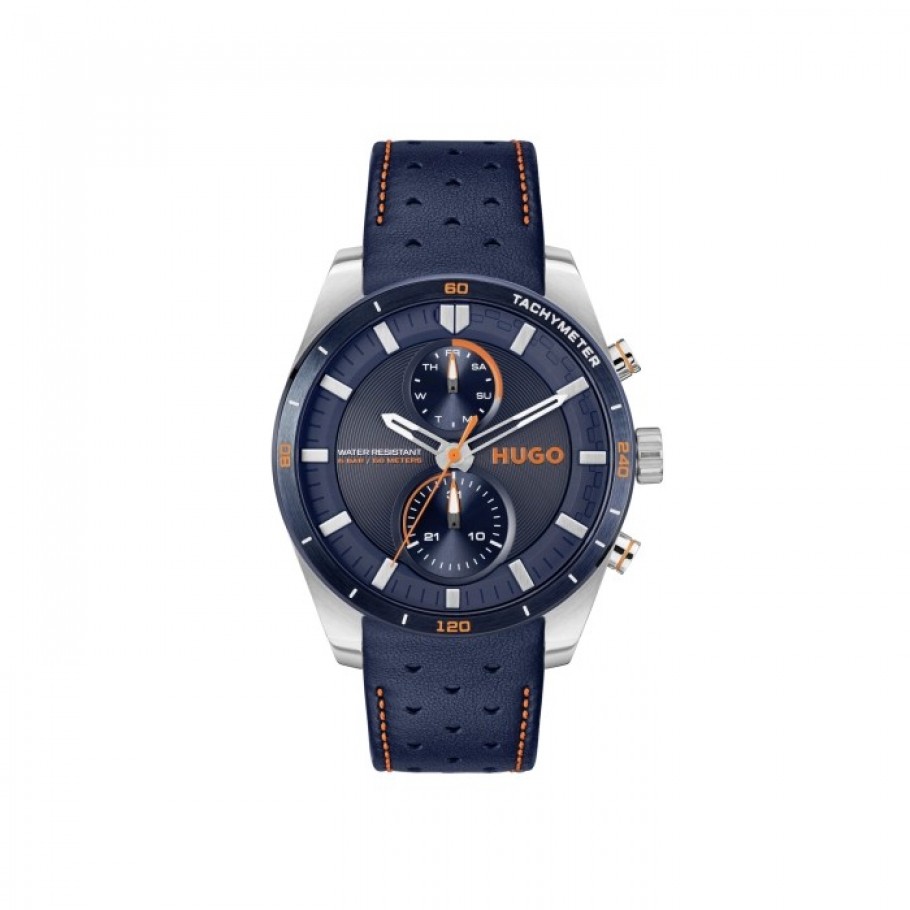Muški ručni sat HUGO 1530371 simbol stila, funkcionalnosti i pouzdanosti, idealan dodatak za svakodnevno nošenje te pruža pouzdanost u svim uvjetima. Kućište sata srebrne boje izrađeno je od kvalitetnih materijala, te plave boje brojčanika. Precizan quartz mehanizam omogućava točno mjerenje vremena dok mu remen od prave kože plave boje daje moderan i sofisticiran izgled.