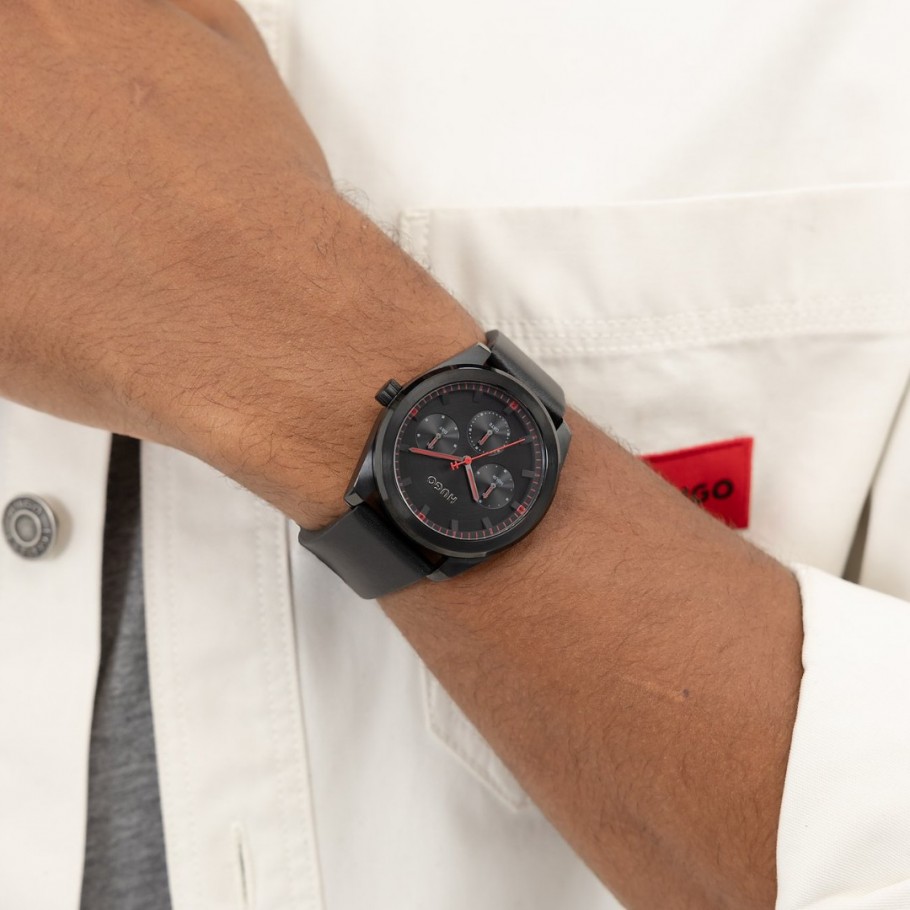 Muški ručni sat HUGO 1530423 simbol stila, funkcionalnosti i pouzdanosti, idealan dodatak za svakodnevno nošenje te pruža pouzdanost u svim uvjetima. Kućište sata crne boje izrađeno je od kvalitetnih materijala, te crne boje brojčanika. Precizan quartz mehanizam omogućava točno mjerenje vremena dok mu remen od prave kože crne boje daje moderan i sofisticiran izgled.