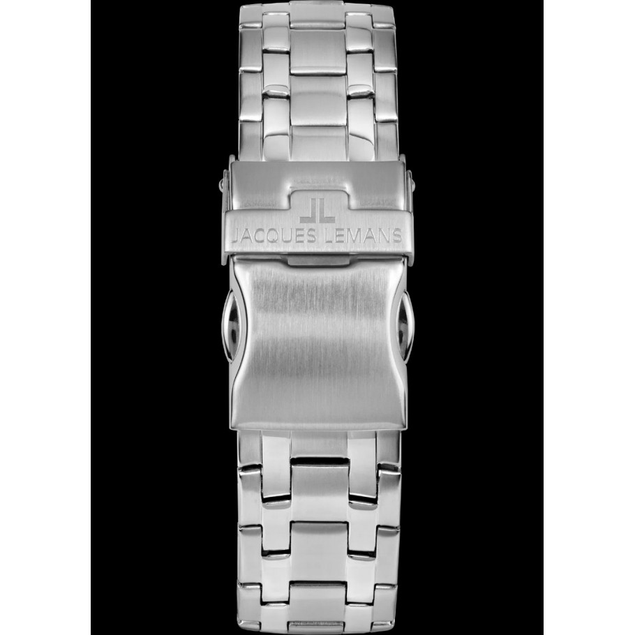 Muški ručni sat JACQUES LEMANS 1-2099E iz kolekcije LIVERPOOL predstavlja savršen spoj elegancije, funkcionalnosti i muževnog stila koji je osmišljen za muškarce s aktivnim stilom života, kojem pruža pouzdanost i stil u svakom trenutku. Kućište sata srebrne boje izrađeno je od nehrđajućeg čelika, te crne boje brojčanika. Precizan quartz mehanizam osigurava dugotrajnu vrijednost i funkcionalnost, dok mu remen od nehrđajućeg čelika srebrne boje pruža udobnost pri nošenju i mogućnost prilagođavanja svakom zglobu.