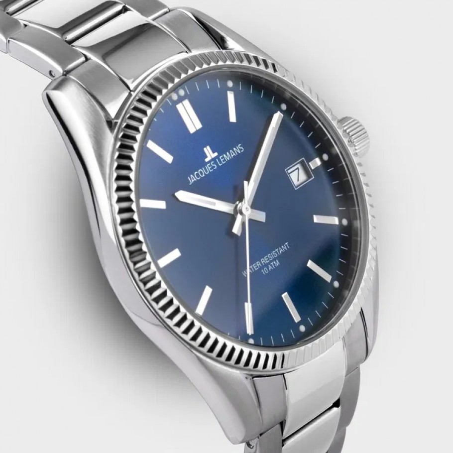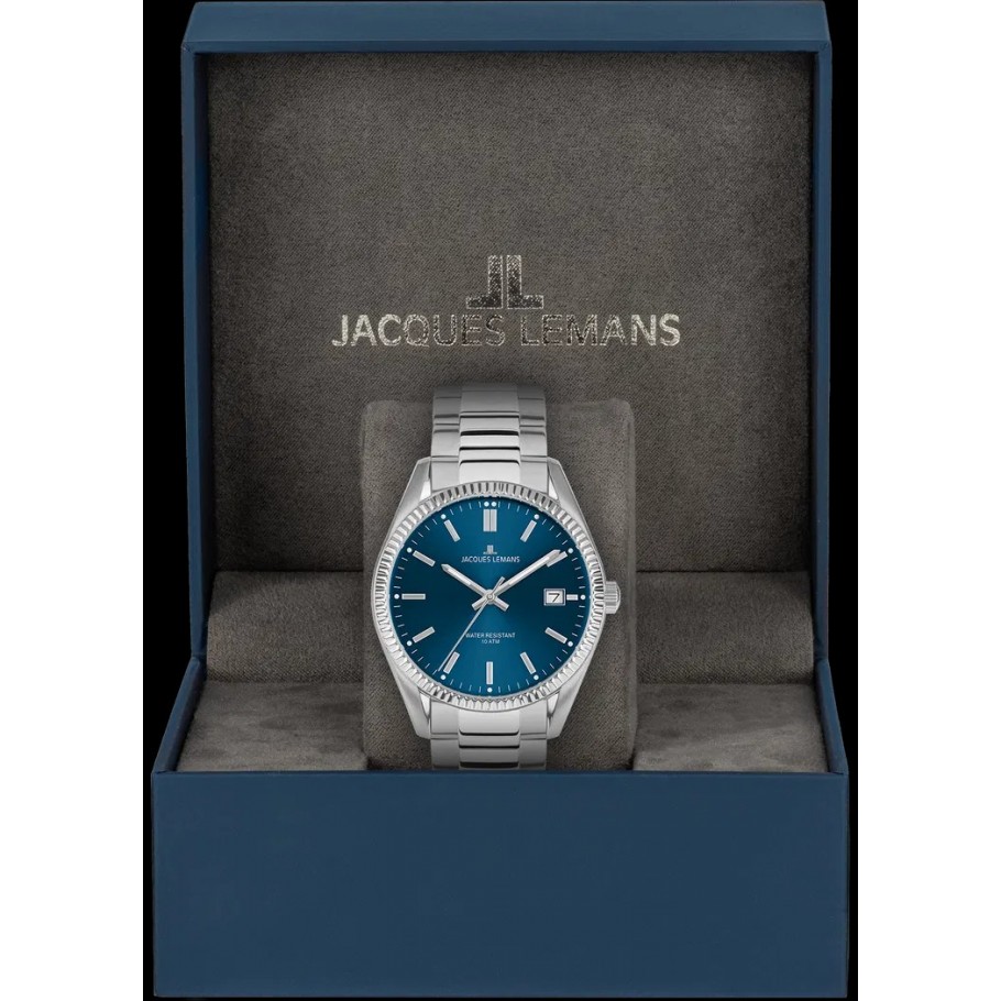 Muški ručni sat JACQUES LEMANS 50-3C iz kolekcije DERBYpredstavlja savršen spoj elegancije, funkcionalnosti i muževnog stila koji je osmišljen za muškarce s aktivnim stilom života, kojem pruža pouzdanost i stil u svakom trenutku. Kućište sata srebrne boje izrađeno je od nehrđajućeg čelika, te plave boje brojčanika. Precizan quartz mehanizam osigurava dugotrajnu vrijednost i funkcionalnost, dok mu remen od nehrđajućeg čelika srebrne boje pruža udobnost pri nošenju i mogućnost prilagođavanja svakom zglobu.