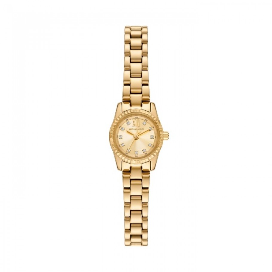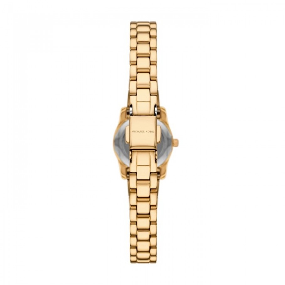 Ženski ručni sat MICHAEL KORS MK4862 iz kolekcije Lexington predstavlja elegantan spoj minimalizma i sofisticiranosti, što ga čini idealnim izborom za žene koje preferiraju minimalistički, ali luksuzan stil prikladan za svakodnevno nošenje, kao i za svečane prilike. Kućište sata zlatne boje izrađeno je od nehrđajućeg čelika, što garantira izdržljivost i dugotrajnost, te zlatna boja brojčanika. Pokreće ga visokokvalitetan quartz mehanizam osiguravajući preciznost u svakom trenutku dok mu remen od nehrđajućeg čelika zlatne boje pruža istovremeno suptilni i elegantan izgled.