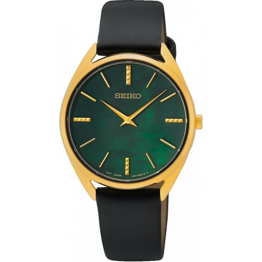 Ženski ručni sat SEIKO SWR080P1 QUARTZ kombinacija profinjenosti i luksuza. Precizna izrada ovaj sat čini savršenim dodatkom za svaku sofisticiranu damu i jednim od najpopularnijih iz kolekcije SEIKO QUARTZ. Satom dominira zlatna boja te zeleni brojčanik. Model je opremljen quartz mehanizmom kalibra 4N30 i kaljenim mineralnim staklom.