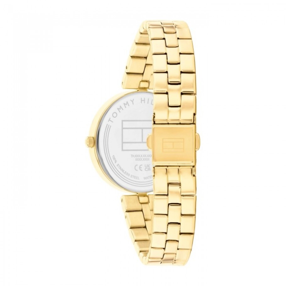 Ženski ručni sat TOMMY HILFIGER 1782685 iz kolekcije Ella savršen je izbor za dame koje cijene kombinaciju klasičnog dizajna i moderne funkcionalnosti. Kućište sata zlatne boje izrađeno je od nehrđajućeg čelika, te sive boje brojčanika. Precizan quartz mehanizam osigurava dugotrajnu vrijednost i funkcionalnost, dok mu remen od nehrđajućeg čelika zlatne boje pruža udobnost i sigurnost pri nošenju.