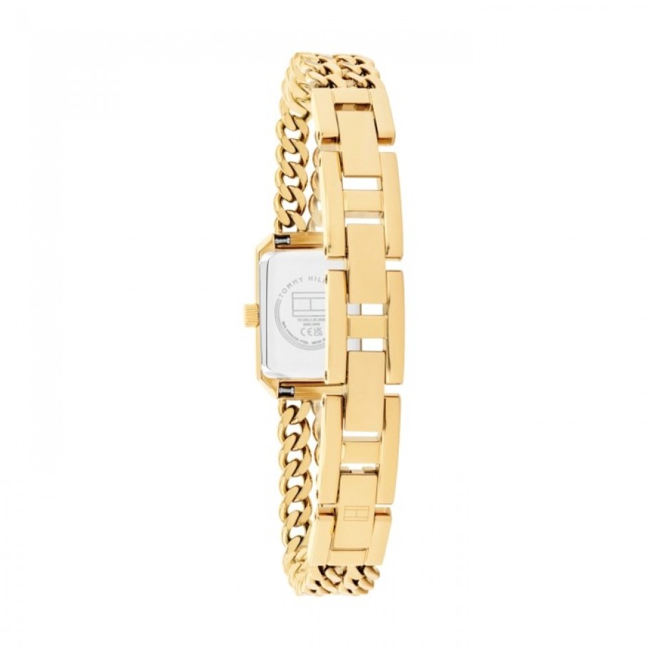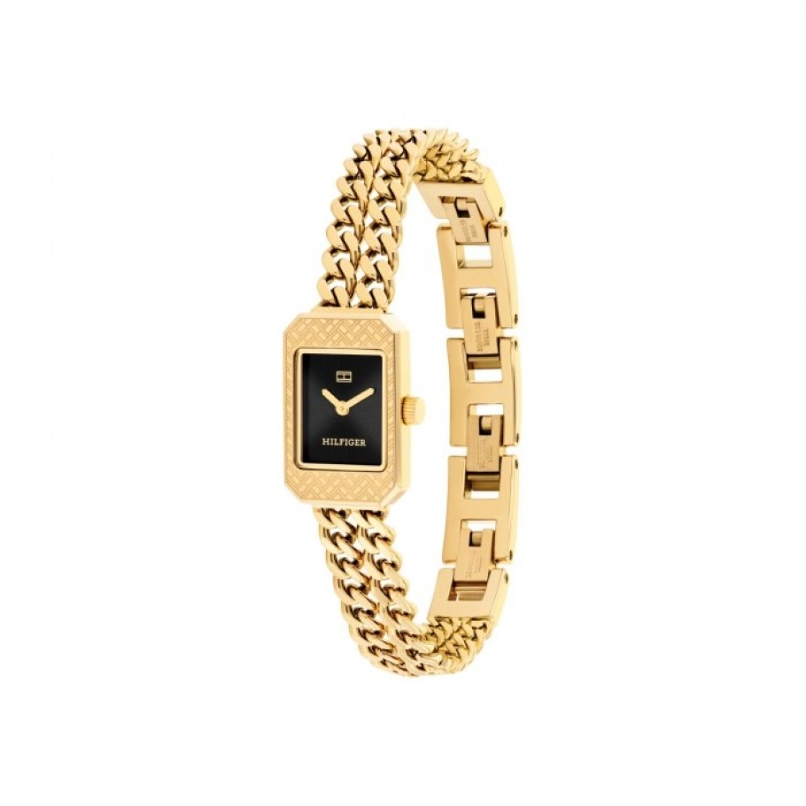Ženski ručni sat TOMMY HILFIGER 1782842 iz kolekcije Sarah savršen je izbor za dame koje cijene kombinaciju klasičnog dizajna i moderne funkcionalnosti. Kućište sata zlatne boje izrađeno je od nehrđajućeg čelika, te crne boje brojčanika. Precizan quartz mehanizam osigurava dugotrajnu vrijednost i funkcionalnost, dok mu remen od nehrđajućeg čelika zlatne boje pruža udobnost i sigurnost pri nošenju.