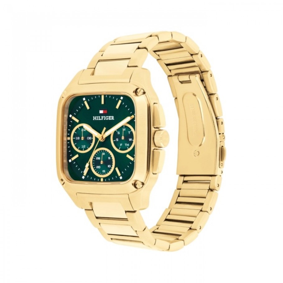 Muški ručni sat TOMMY HILFIGER 1792223 iz kolekcije Herald savršen je izbor za muškarce koji cijene kombinaciju klasičnog dizajna i moderne funkcionalnosti. Kućište sata zlatne boje izrađeno je od nehrđajućeg čelika, te zelene boje brojčanika. Precizan quartz mehanizam osigurava dugotrajnu vrijednost i funkcionalnost, dok mu remen od nehrđajućeg čelika zlatne boje pruža udobnost i sigurnost pri nošenju.