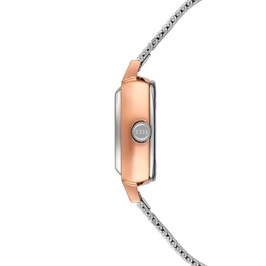 Ženski ručni sat U.S.POLO ASSN. USPA2066-05 savršen je spoj profinjenosti  i sofisticirane elegancije, idealan za dame koje preferiraju klasičan, ali moderan dizajn. Kućište sata rozo zlatne boje izrađeno je od visokokvalitetnih materijala, te srebrne boje brojčanika. Precizan quartz mehanizam omogućava točno mjerenje vremena dok mu remen od nehrđajućeg čelika srebrne boje daje moderan i svestran stil.